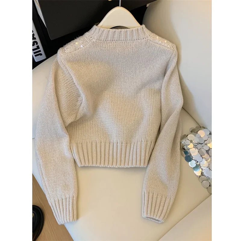 • French Sequin Design : This French Sequin Sweater Top features a stunning sequin design, adding a touch of glamour to your autumn and winter wardrobe.