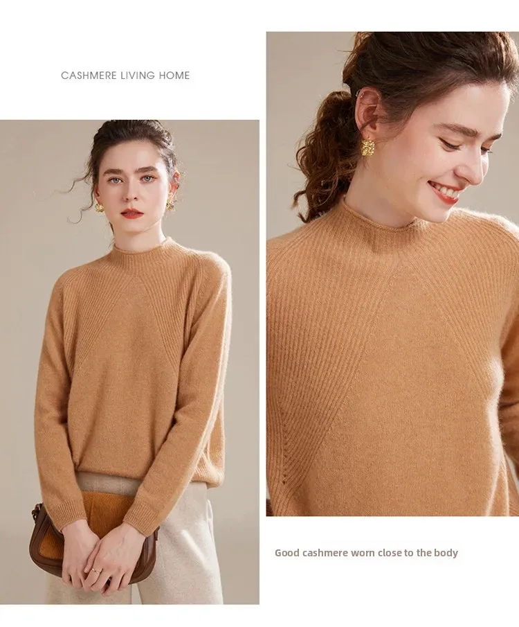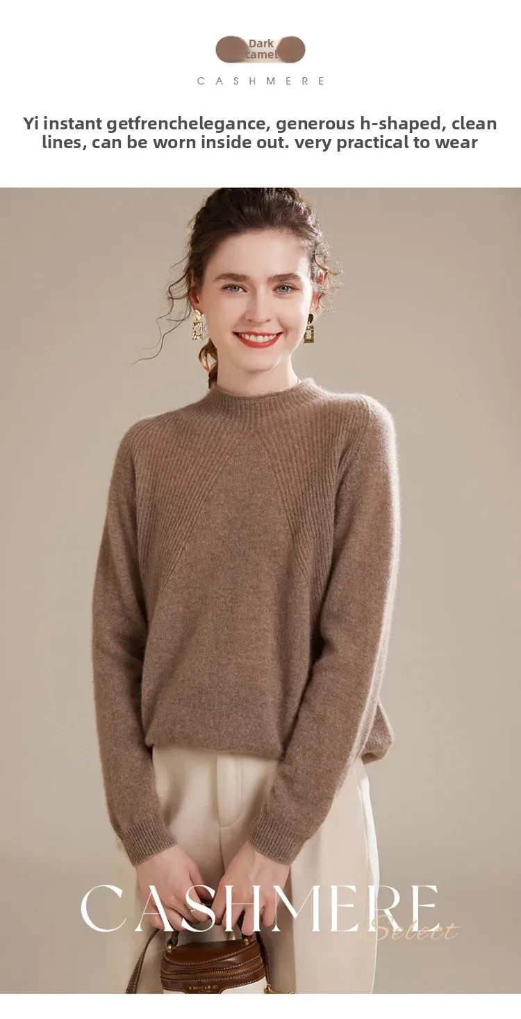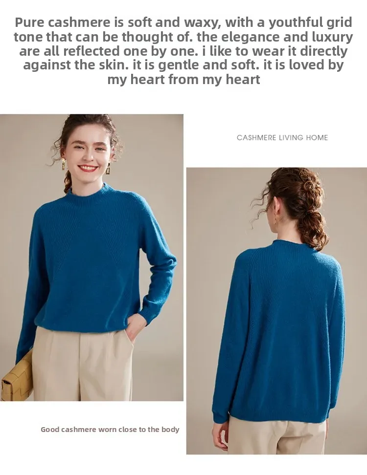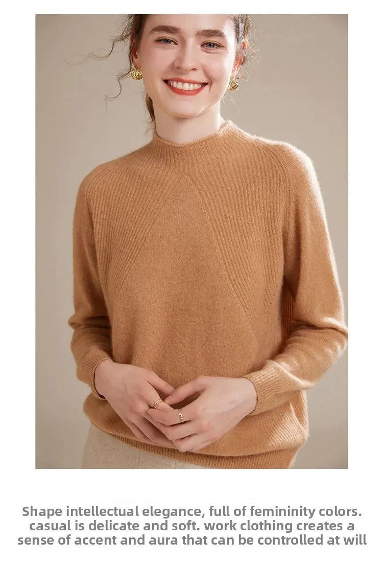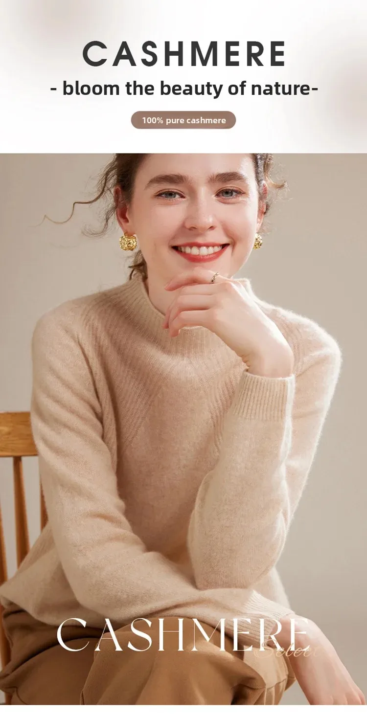 Pure Cashmere Knitwear Half High Collar Pullover Classic Loose Wool Top for Women Basic Style Autumn Winter Fashion Essential