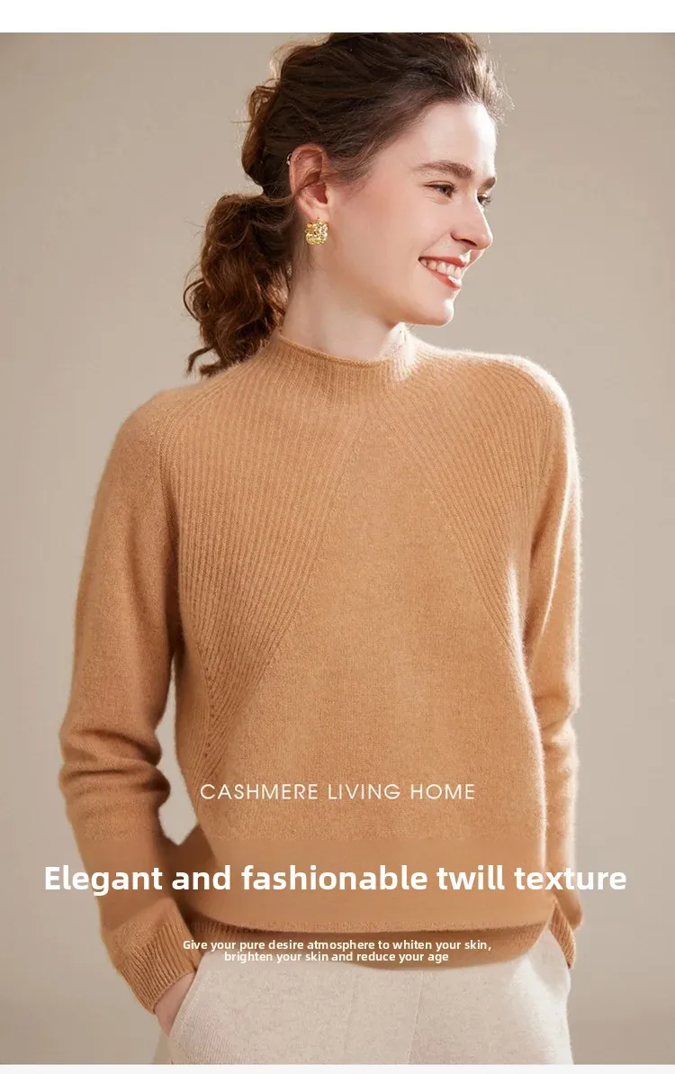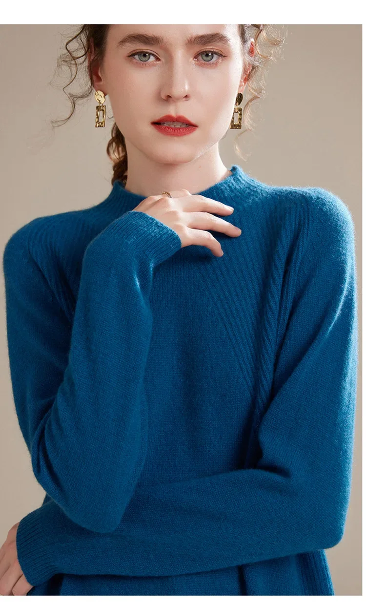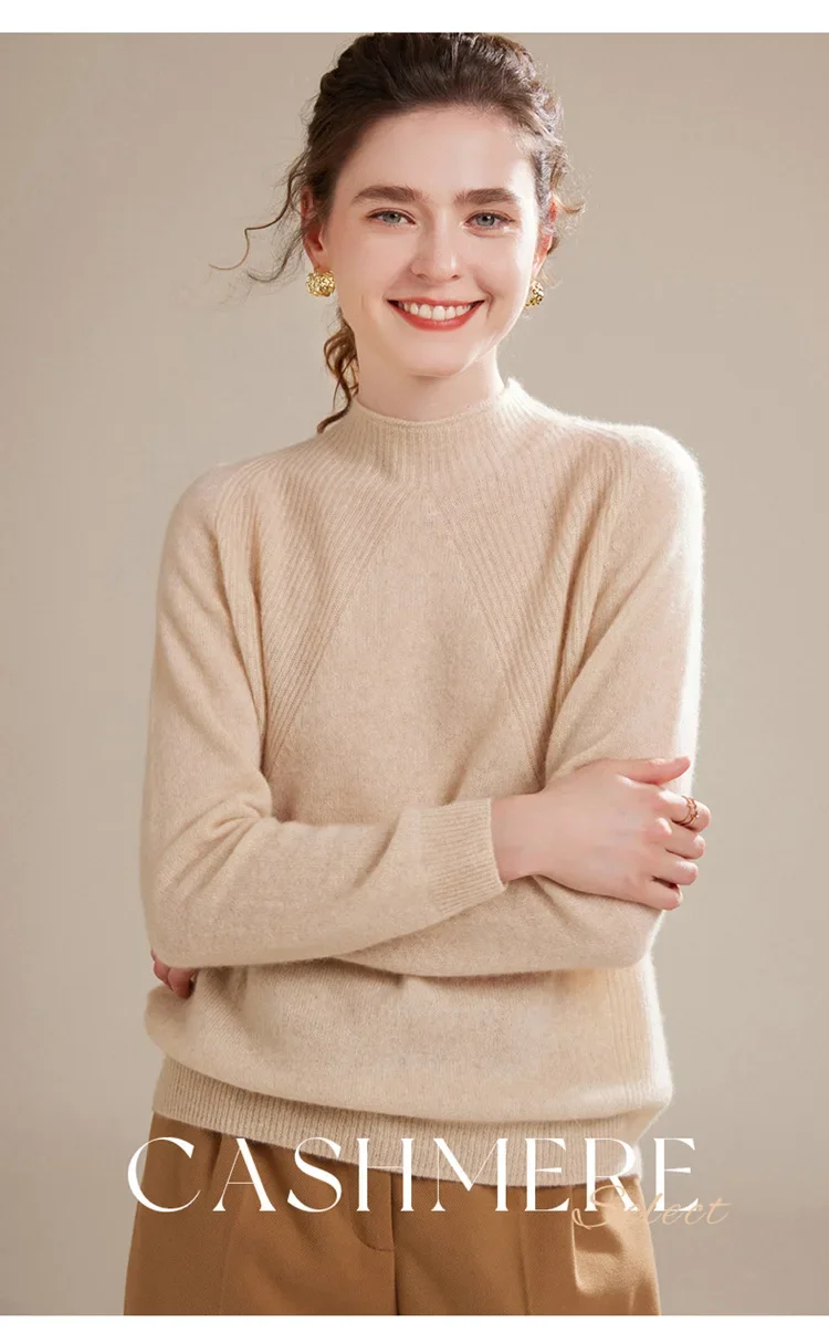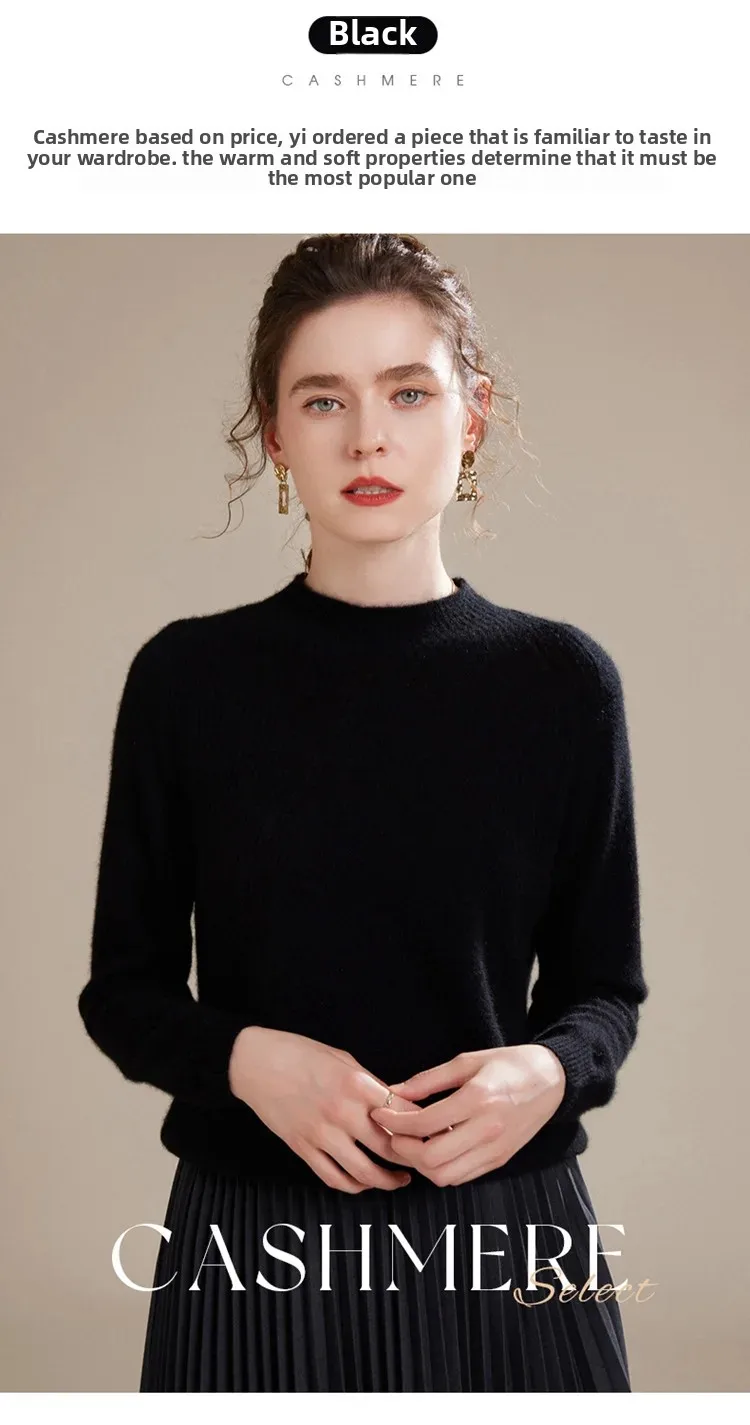 Pure Cashmere Knitwear Half High Collar Pullover Classic Loose Wool Top for Women Basic Style Autumn Winter Fashion Essential