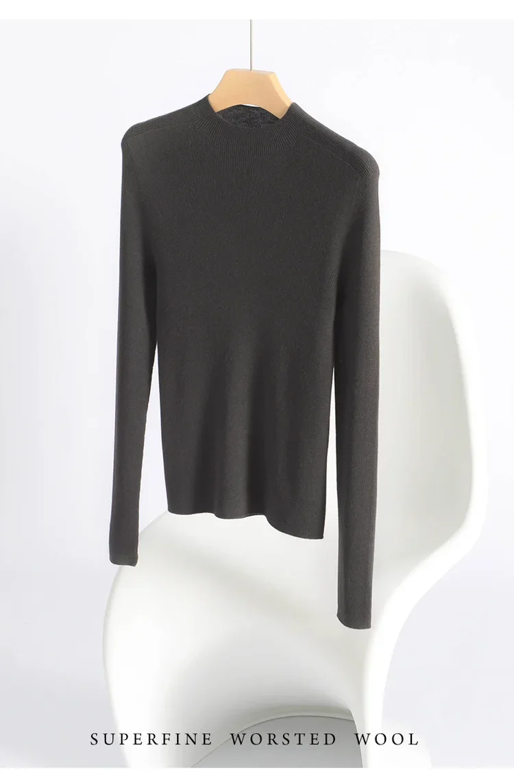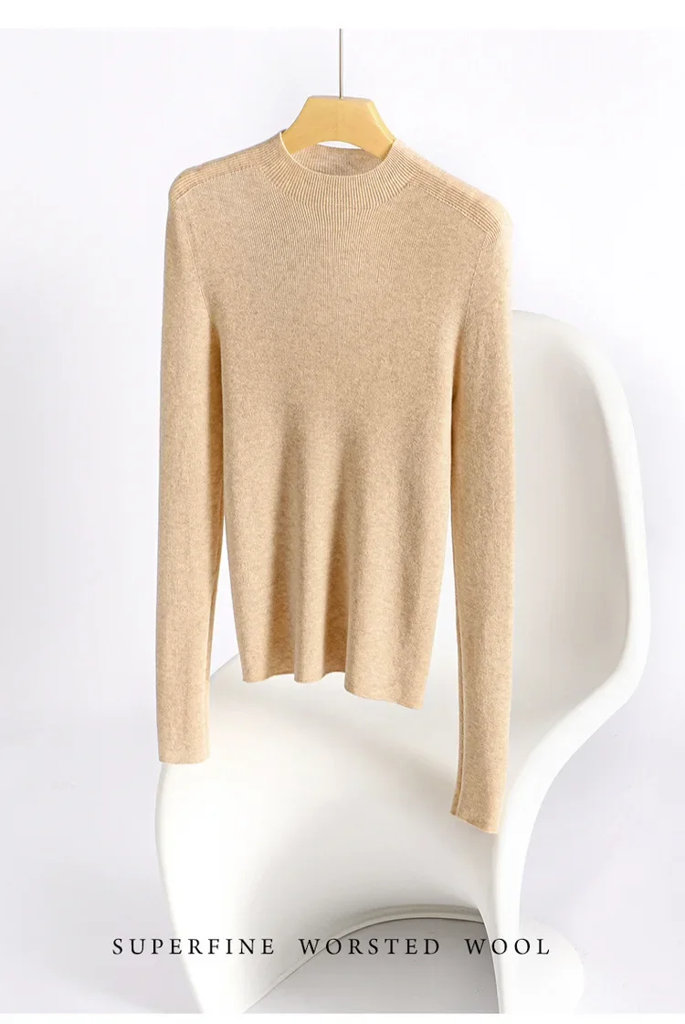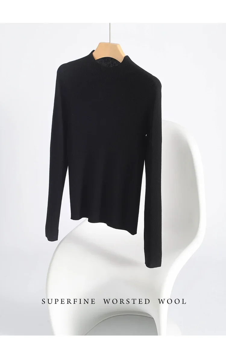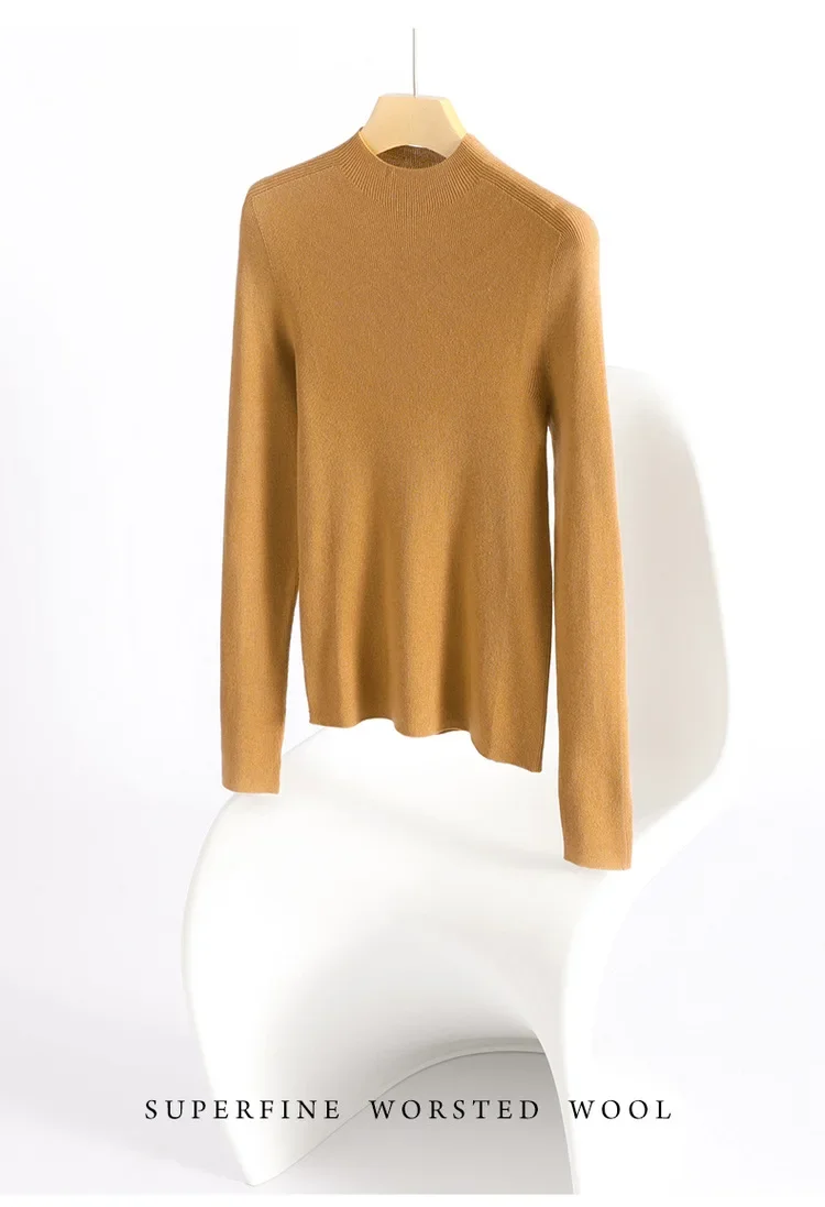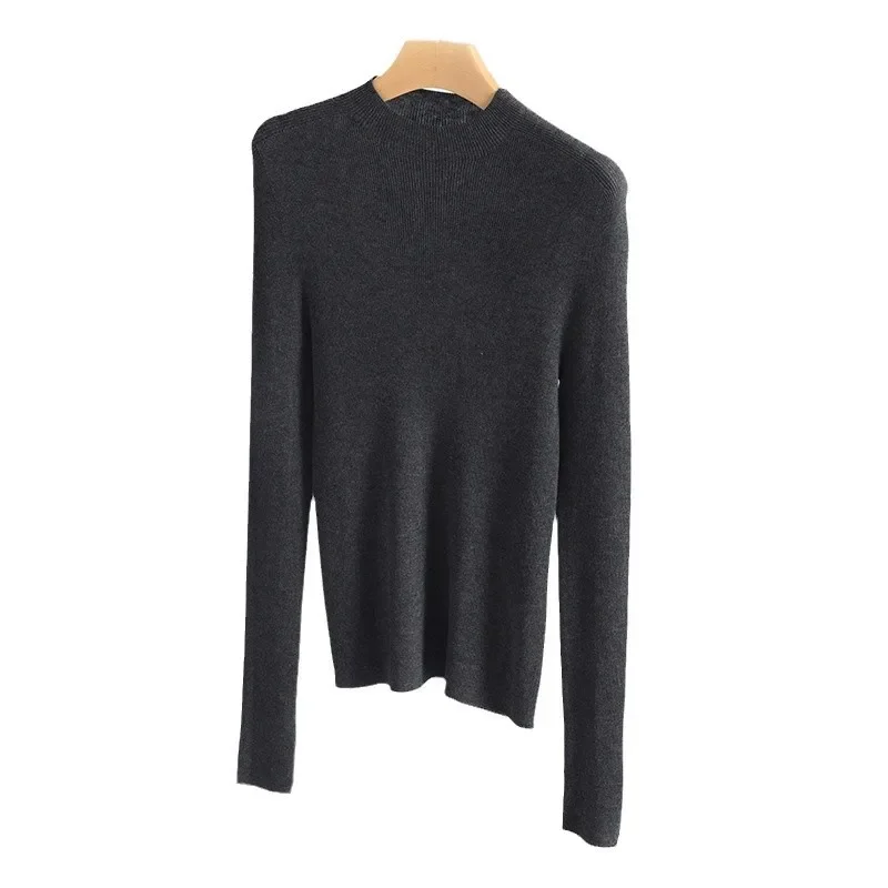 Pure Color Cashmere Knitted Base Shirt Half High Collar Seamless Integrated Women’s Knitwear Top for Autumn And Winter
