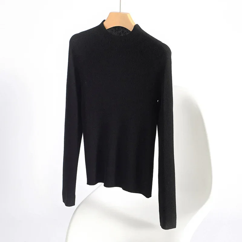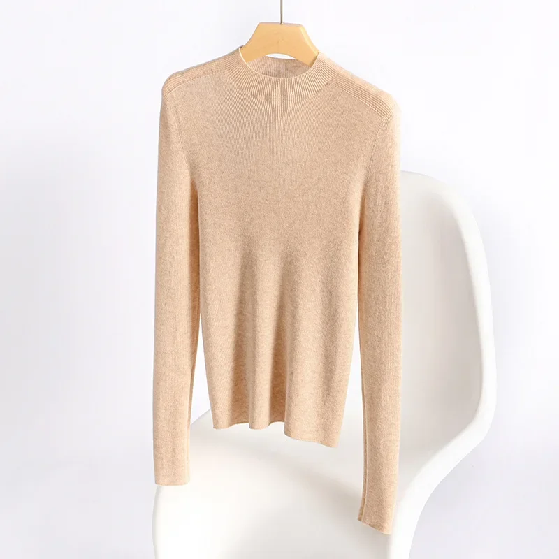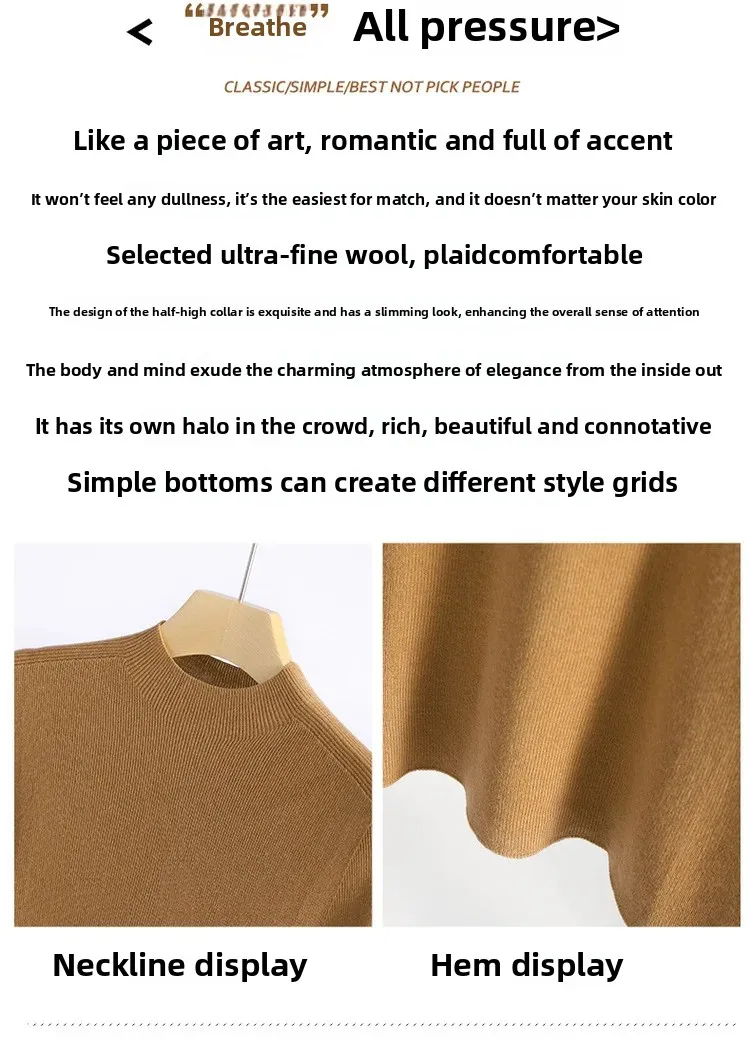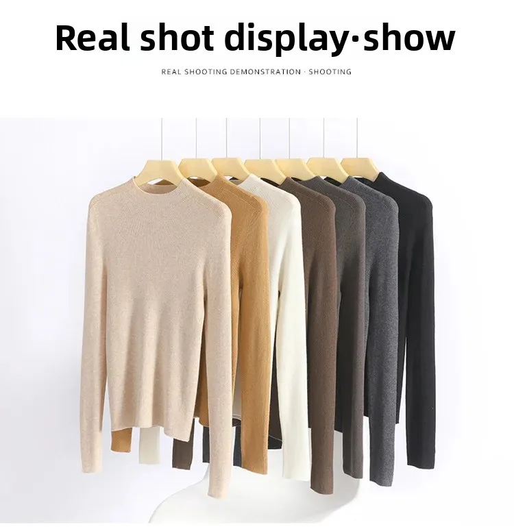 Be the first to review “Pure Color Cashmere Knitted Base Shirt Half High Collar Seamless Integrated Women’s Knitwear Top for Autumn And Winter”